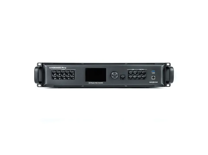 A controladora NovaStar VX2000 Pro All-in-One é uma solução avançada para processamento e controle de painéis LED em aplicações profissionais. Integrando múltiplas funções em um único equipamento, oferece suporte a entrada de vídeo em até 4K@60Hz e capacidade de processamento de até 13 milhões de pixels, atendendo projetos de grande porte e alta resolução.
